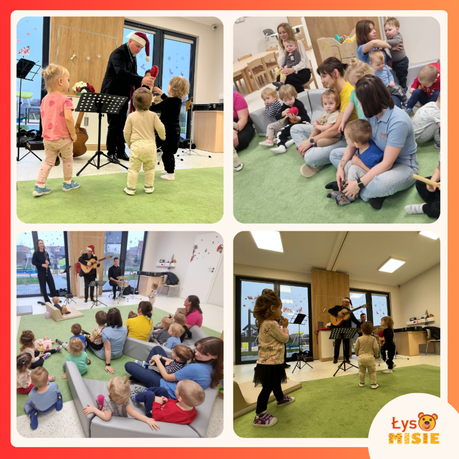 Podczas spotkania dzieci poznały dźwięki klarnetu, perkusji oraz gitary, które wprowadziły wszystkich w radosny, świąteczny nastrój. Muzyka pobudzała wyobraźnię, zachęcała do aktywnego słuchania oraz spontanicznej radości, a wspólne muzykowanie stało się dla dzieci pięknym i inspirującym doświadczeniem. Takie zajęcia stanowią ważny element wszechstronnego rozwoju dziecka – pobudzają wyobraźnię, wspierają koncentrację oraz pozwalają wyrażać emocje poprzez dźwięk i ruch. Spotkanie przebiegało w atmosferze radości, uśmiechu i spontanicznej zabawy, pozostawiając u dzieci wiele pozytywnych emocji.